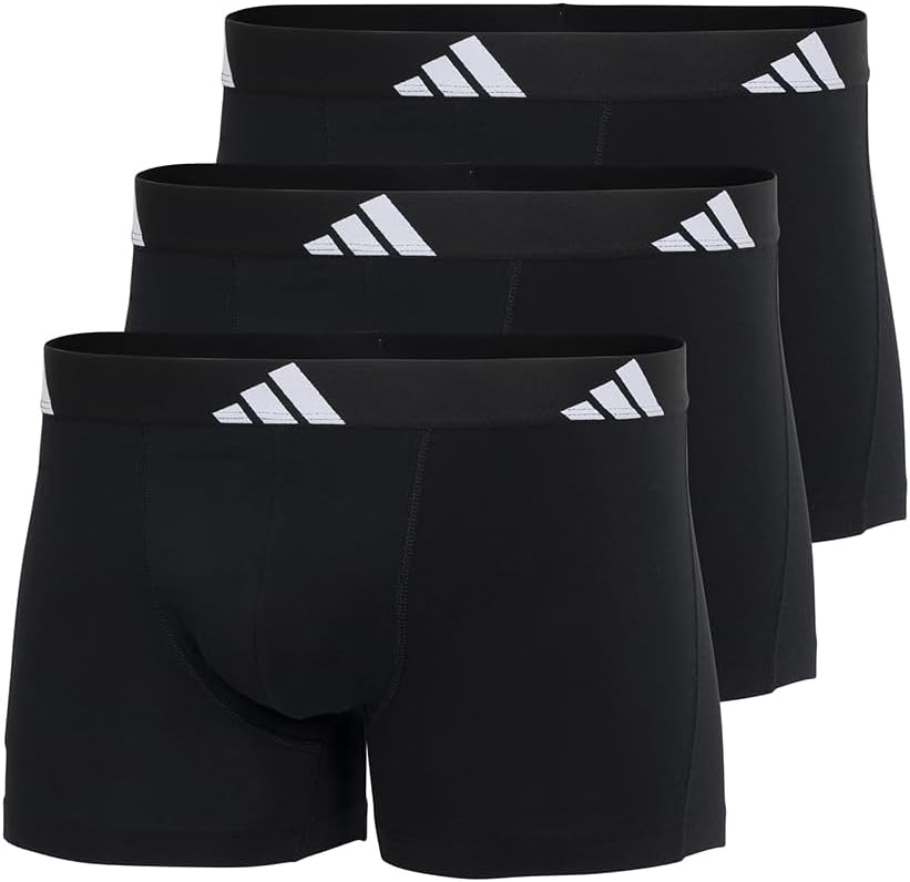 The adidas Active Flex 3-pack boxer shorts in dark blue, black and logo design is a must-have for those who lead an active lifestyle. Featuring the adidas logo on the front, these boxer briefs offer 4-way stretch for optimal movement. Quick-drying and moisture-wicking fabric keeps you dry and comfortable, while total wash protection ensures durability. The chafe-free construction and contoured comfort pouch provide extra support and prevent discomfort. Perfect for workouts and everyday wear, these boxer briefs combine adidas iconic style with high-performance features. Note: This item cannot be returned or exchanged for hygiene reasons.