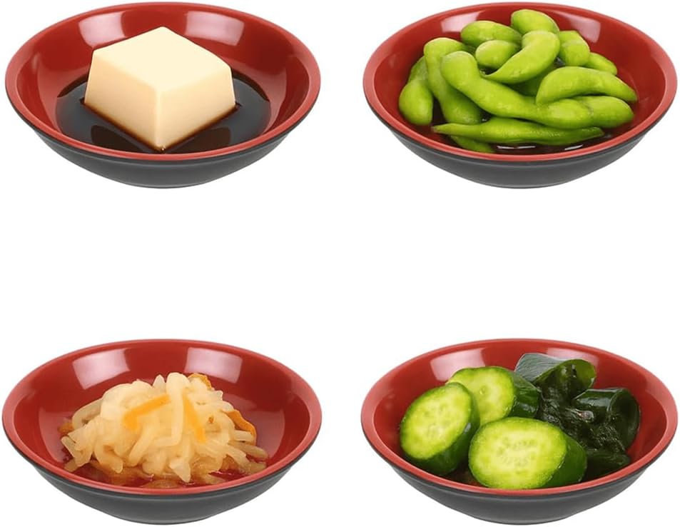 Upgrade your dining experience with this Round Melamine Sauce Dishes, perfect for serving soy sauce, ketchup, BBQ sauce, wasabi, ginger, and more. Each small dipping bowl measures 3.75 inches in diameter and is crafted from food-grade melamine, ensuring durability and safety for serving food. These break and scratch-resistant sauce plates are dishwasher-safe for easy cleanup, making them ideal for both home and restaurant use. Whether you're enjoying sushi, nigiri, dim sum, appetizers, snacks, or desserts, these green melamine sauce dishes add a touch of traditional style to your table. Perfect for everyday meals or special occasions!