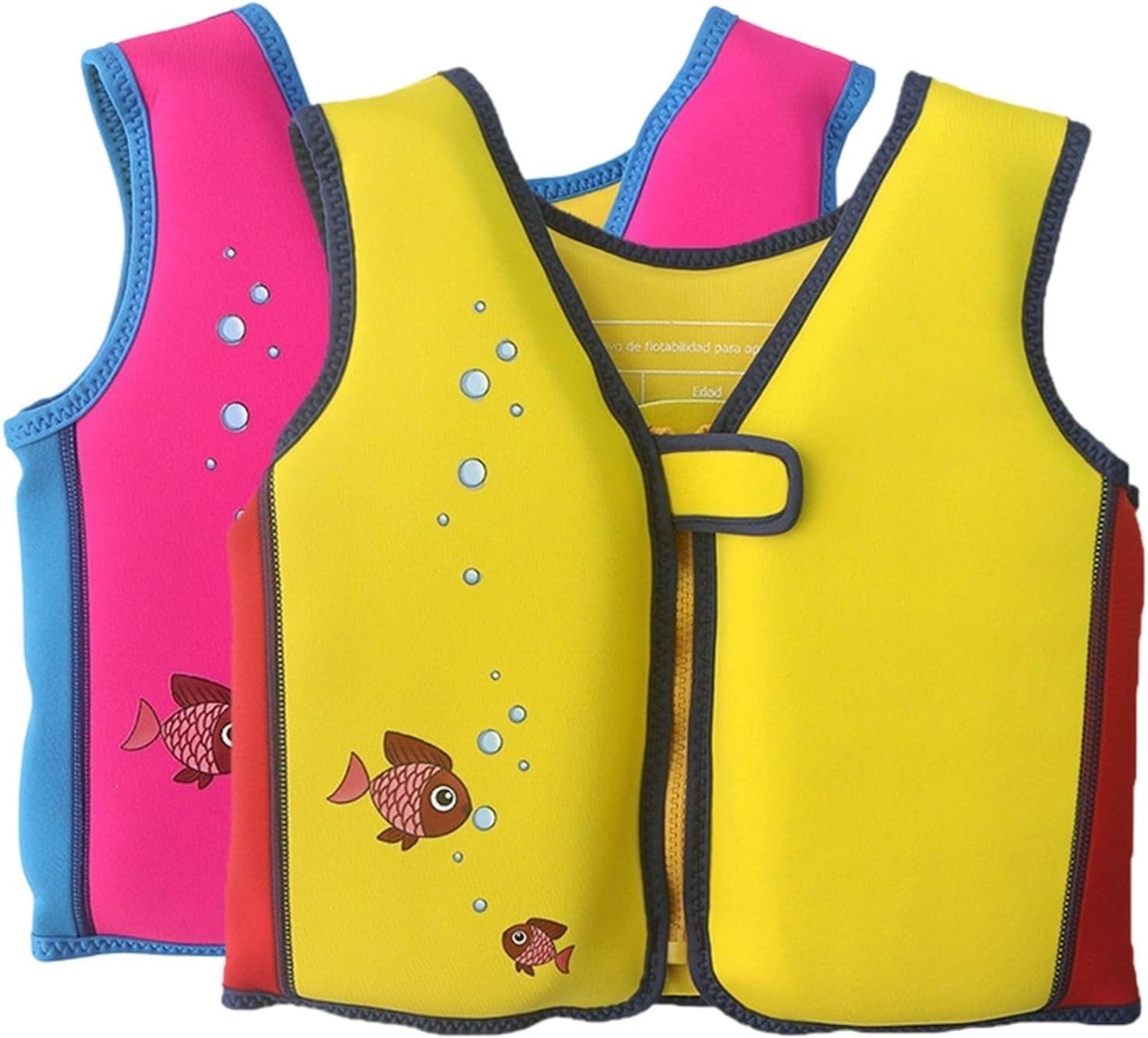 Premium Comfort and Safety for Young SwimmersMake a splash with confidence using our Kids Neoprene Swim Vest. Designed specifically for early learners, this floating jacket acts as a perfect buoyancy aid to bridge the gap between fear and fun in the water. Unlike bulky traditional life preservers, our streamlined design allows for a full range of motion, enabling children to kick, paddle, and practice correct swimming techniques naturally.Why Choose Our Swim Vest?Ultimate Comfort: Made from premium soft neoprene, it feels gentle against sensitive skin, prevents rubbing, and retains warmth in cooler water, making it suitable for extended wear at the pool or beach.Secure & Stable: The combination of a robust front zipper and a strong adjustable waist strap ensures a snug fit that won't slip off, even during vigorous splashing or diving.Safety First: Bright, high-visibility colors ensure your child is always easy to spot in crowded water parks or open water settings.Ideal Usage ScenariosPerfect for swim schools, family holidays, lake trips, and shallow water exploration. It serves as an excellent training tool for toddlers and preschoolers mastering the basics of floating and strokes. Please note: This product is a swim aid and floatation device, not a substitute for professional life-saving equipment.Name: Life VestMaterial: Pearl CottonColor: Yellow, PinkSize: S (2-3 Years), L (5-6 Years)Package Contents:1 x Life VestPlease check your life vest size